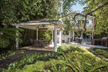 Remodeled vintage Farmhouse-style home in the heart of sought-after Sycamore Park. Contemporary features blend beautifully with the warmth of period details. You won’t believe how much house this is! Five bedrooms plus an office and five baths (three full and two partial). Large bright living room with vaulted ceiling, skylights, granite wood-burning fireplace, and custom bookshelves and cabinets. Chef’s kitchen with granite countertops, a six-burner Viking Professional cooktop, double Thermador electric self-cleaning convection ovens, Fisher & Paykel double drawer dishwasher, and a breakfast bar. Formal dining room with built-in cabinetry and a deck to rest under the shade of a beautiful palm tree. Private master suite features a cathedral ceiling, fireplace, luxurious limestone bath and French doors opening to a veranda overlooking the stunning grounds. Great family room, also with a wood-burning fireplace, has two sets of sliding doors opening to the limestone patio and outdoor kitchen, and large, lusciously landscaped backyard, former host to the Mill Valley Garden Tour, with fruit trees, gardens, a covered patio area, and enough room to create the play spaces of your dreams. Other features of this wonderful home include an activity/media room, a possible guest suite arrangement with a private entrance, a large laundry room and an oversized attached one-car garage with additional off-street parking. All this is just a stone’s throw to Sycamore Park, and close to schools, shops, restaurants, and the Mill Valley Community Center.