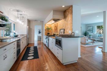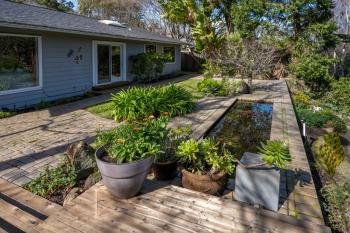 Fabulous, tastefully updated, three bedroom, two and one-half bath single-level home in one of Belvedere’s most convenient and sought-after locations. Enter through the pedestrian gate to this peaceful oasis, set privately amidst lush, mature landscaping on a sunny, mostly flat lot. Enjoy the garden views from almost every room and easy access to the deck, patio, and yard for seamless indoor-outdoor living and entertaining. Elegant design details include a chef’s kitchen with impressive, granite slab countertops, a tumbled granite backsplash and a professional Wolf range; a custom limestone wood-burning fireplace and floor-to-ceiling windows in the living room; and a luxurious primary bath. The flexible floor plan accommodates an office or guest room with a separate entrance. Hardwood floors throughout. Solar with battery backup. Additional highlights include a spacious laundry room and a two-car attached garage. Expansion potential. Located moments away from many of Belvedere and Tiburon’s finest amenities, including parks, walking & bike paths, schools, shops, restaurants & the Tiburon-SF ferry.
